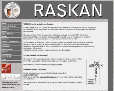 De startpagina van de laatste website van de rasclub: